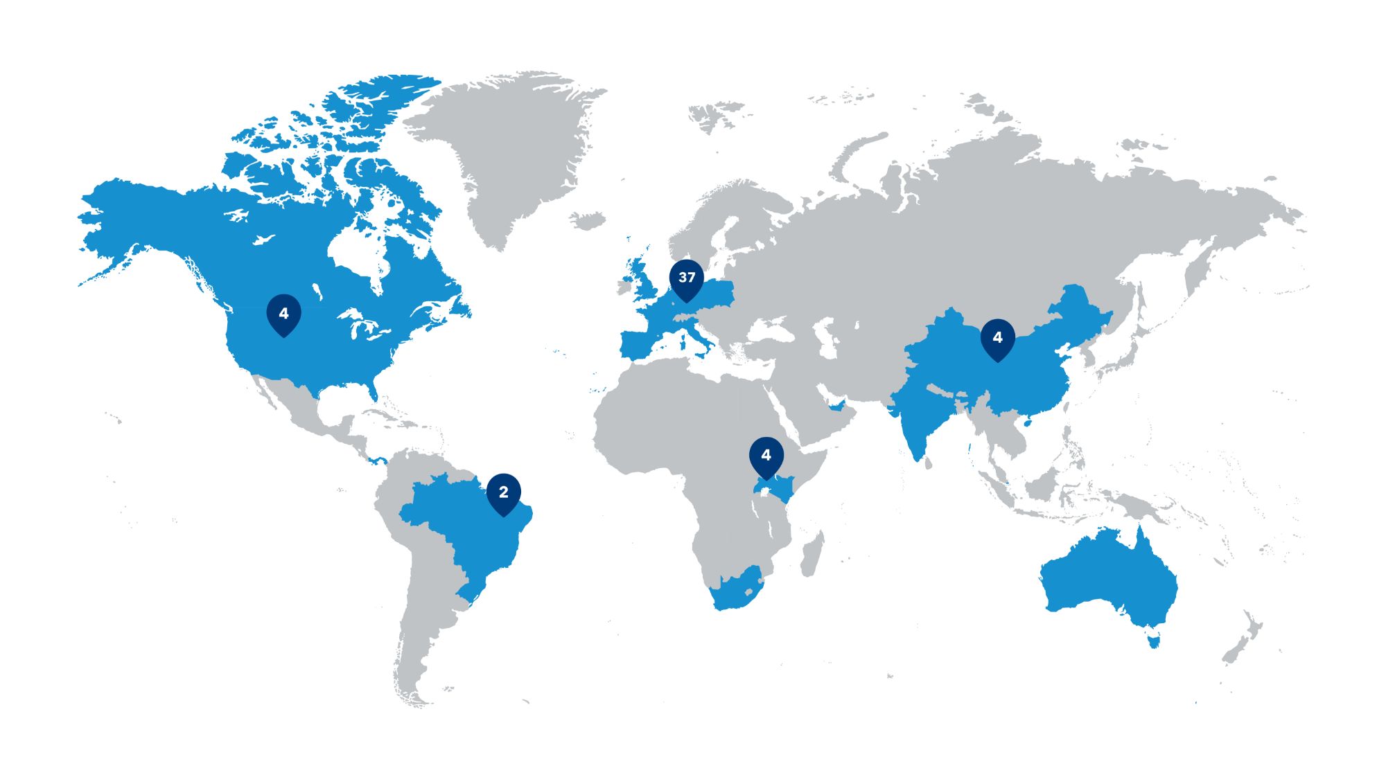 Approvisionnement régional, dans le monde entier. Le groupe K+S possède des sites de production en Europe, en Amérique du Nord, en Amérique centrale et en Amérique du Sud, ainsi que des sites de distribution en Afrique et en Asie.